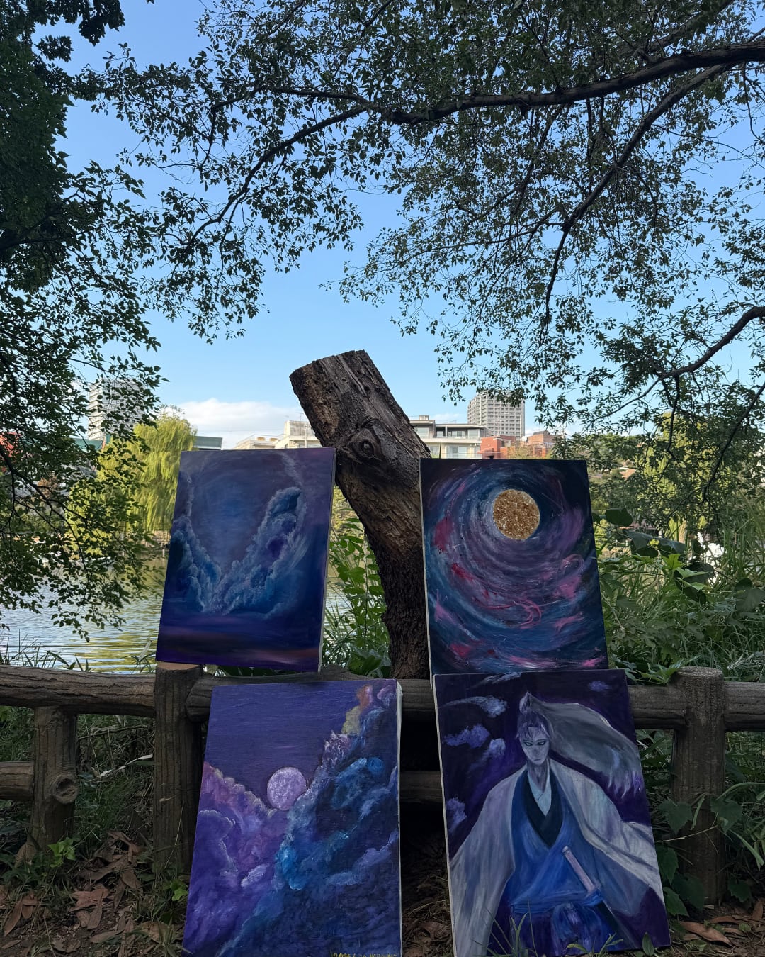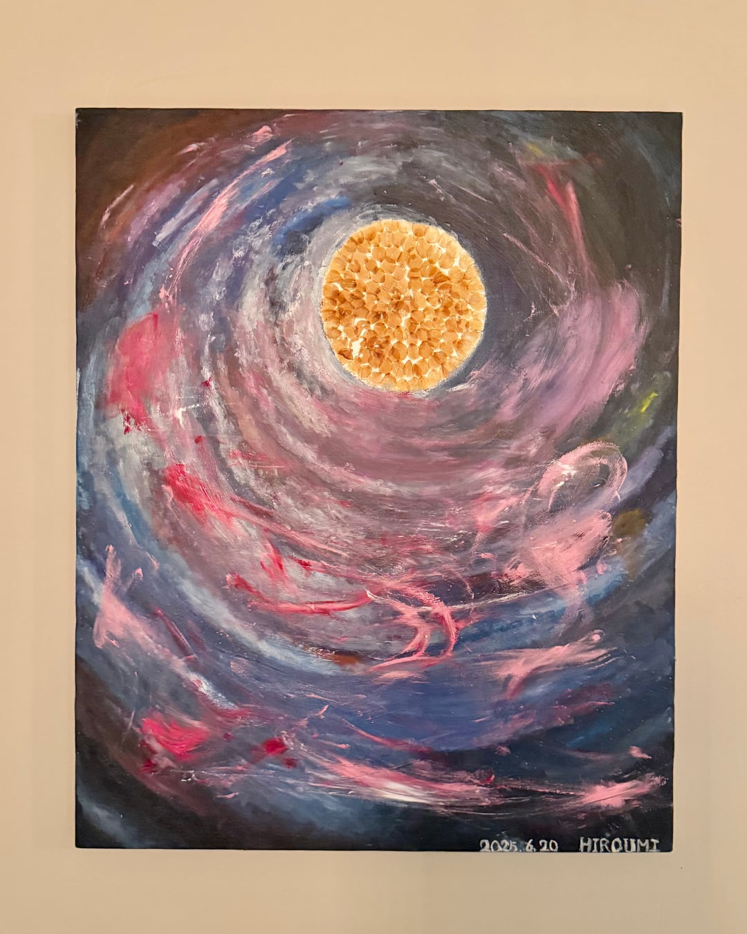 桜が散る様もそのままアートとして消化したくて、散っていくその一瞬を油絵で表現してます。